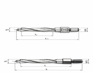 | Diametrul parti active d₁ [mm] | Diametru parte activa tr. 2 d₂ [mm] | Diametru prindere coada d₃ [mm] | Lungime varf l ₁ [mm] | Lungime spira l₂ [mm] | Lungime totala L [mm] |